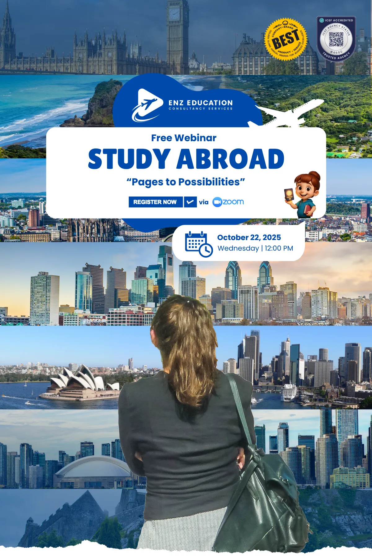Unlock a world of possibilities with ENZ Education Consultancy Services. We are your one-stop shop for navigating the exciting journey of studying abroad. ENZ is your trusted partner in achieving your educational goals.